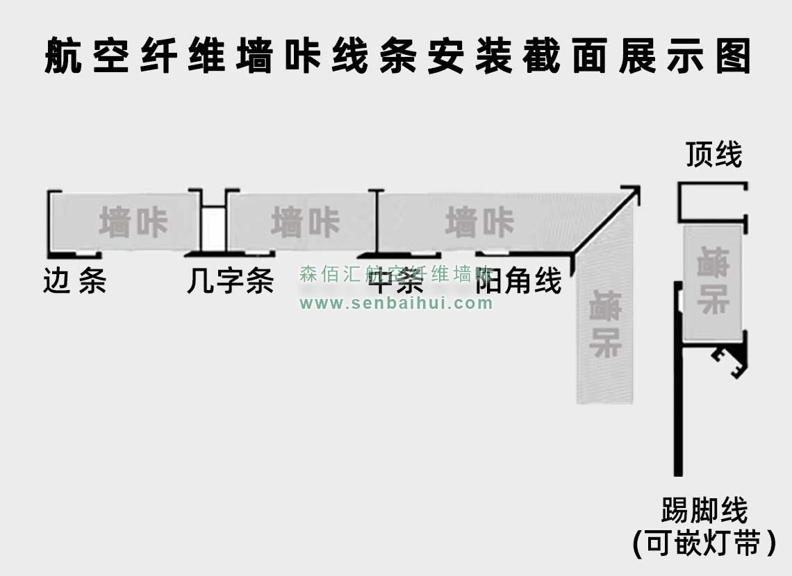 宿州航空纤维墙咔铝合金带灯中条(哑黑氧化)